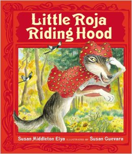Awards *Pura Belpre Illustrator Award Reviews Publisher's Weekly Elya remains a master at blending Spanish and English to create clever, lively verse, and she and Guevara give the story of Little Red Riding Hood an entertaining and thoroughly modern spin. Roja’s mother is busy watching telenovelas, so she sends her daughter to deliver sopa to her ailing Abuela. Riding on an ATV, Roja meets a wolf (“¡Cuidado! !Cuidado!” wail the forest birds in a kind of Greek chorus), who beats her to Abuela’s house. Guevara tucks fairy tale and nursery rhyme characters throughout her watercolor-and-gouche paintings, and Roja’s tech-driven solution to prevent future break-ins will leave readers smiling. Ages 5–8. The Horn Book Little Red rides an ATV to deliver la canasta (basket) to her ailing abuela in this hip updated version of the traditional tale. Liberally sprinkled with Spanish words and phrases, the rhyming text is fresh and funny (“‘Abue,’ he said in a high squeaky voz, / ‘I’m sorry to hear of your terrible tos’”) and often unexpected. (For example, “basket” is rhymed with “who asked it?”) And just as clever as the quirky text are the watercolor, ink, and gouache illustrations that contain plenty of humor and multiple layers of meaning. The Three Blind Mice accompany Little Roja on her journey, while three magpies follow and call out warnings that appear in flowing ribbons that act as dialogue bubbles. Two little trickster elves make mischief throughout. But best of all is Abuela herself, shown here as an aging hippie who appears to be working on a manuscript revision in her sick bed. She doesn’t really need rescuing — she protects herself by holding up a statue of St. Jude; Little Roja joins in by throwing a pot of hot sopa at the wolf. Once the wolf is vanquished, capable Abuela discourages future intruders by installing a security sistema, while Little Roja trades in her red hood for one with tiger stripes. An inventive spin on a familiar tale, this will stand up to repeated readings and viewings. Youtube review - Marisol Herrera Starred review -August Horn Book Little Red rides an ATV to deliver la canasta (basket) to her ailing abuela in this hip updated version of the traditional tale. Liberally sprinkled with Spanish words and phrases, the rhyming text is fresh and funny (“‘Abue,’ he said in a high squeaky voz, / ‘I’m sorry to hear of your terrible tos’”) and often unexpected. (For example, “basket” is rhymed with “who asked it?”) And just as clever as the quirky text are the watercolor, ink, and gouache illustrations that contain plenty of humor and multiple layers of meaning. The Three Blind Mice accompany Little Roja on her journey, while three magpies follow and call out warnings that appear in flowing ribbons that act as dialogue bubbles. Two little trickster elves make mischief throughout. But best of all is Abuela herself, shown here as an aging hippie who appears to be working on a manuscript revision in her sick bed. She doesn’t really need rescuing—she protects herself by holding up a statue of St. Jude; Little Roja joins in by throwing a pot of hot sopa at the wolf. Once the wolf is vanquished, capable Abuela discourages future intruders by installing a security sistema, while Little Roja trades in her red hood for one with tiger stripes. An inventive spin on a familiar tale, this will stand up to repeated readings and viewings. (Kathleen T. Horning) School Library Journal blurb Elya’s version of the familiar story has a rhyming text and uses Spanish words throughout, sometimes as a way of creating rhymes. The rhythm and rhyme scheme are spot-on, making this a great choice for reading aloud. The grandmother character is particularly likable. She is not about to be saved by any random woodcutter who happens to be wandering through the forest. She’s totally buff, and prepared to dispatch the wolf on her own! Guevara, who won the Pura Belpre Award for illustration for Gary Soto’s “Chato” books (Putnam), provides the rollicking images in this reworking of the fairy tale. School Library Journal review Guevara. 32p. glossary. Putnam. Apr. 2014. Tr $16.99. ISBN 9780399247675. LC 2012022545. Booklist review